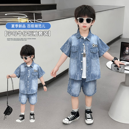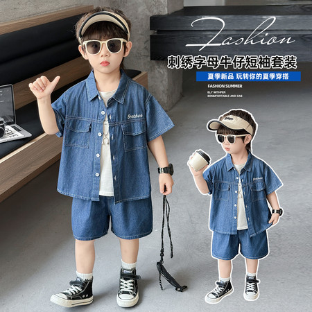 1*2下载视频“MT-刺绣字母Bro牛仔短袖套装”