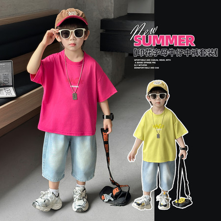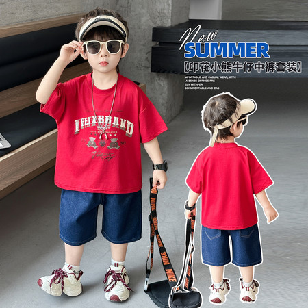 1*5收藏“MT-印花小熊牛仔中裤套装”