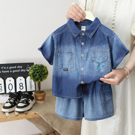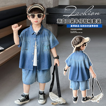 王*瑞收藏“GP-渐变口袋77牛仔衬衫短袖套装”